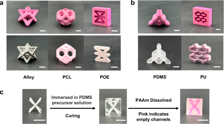 Furthermore, while the mold is compatible with a variety of substances, it does have its limitations. For example, water-soluble materials like soft hydrogels may not be suitable for this method because the dissolution process would compromise the final structure.